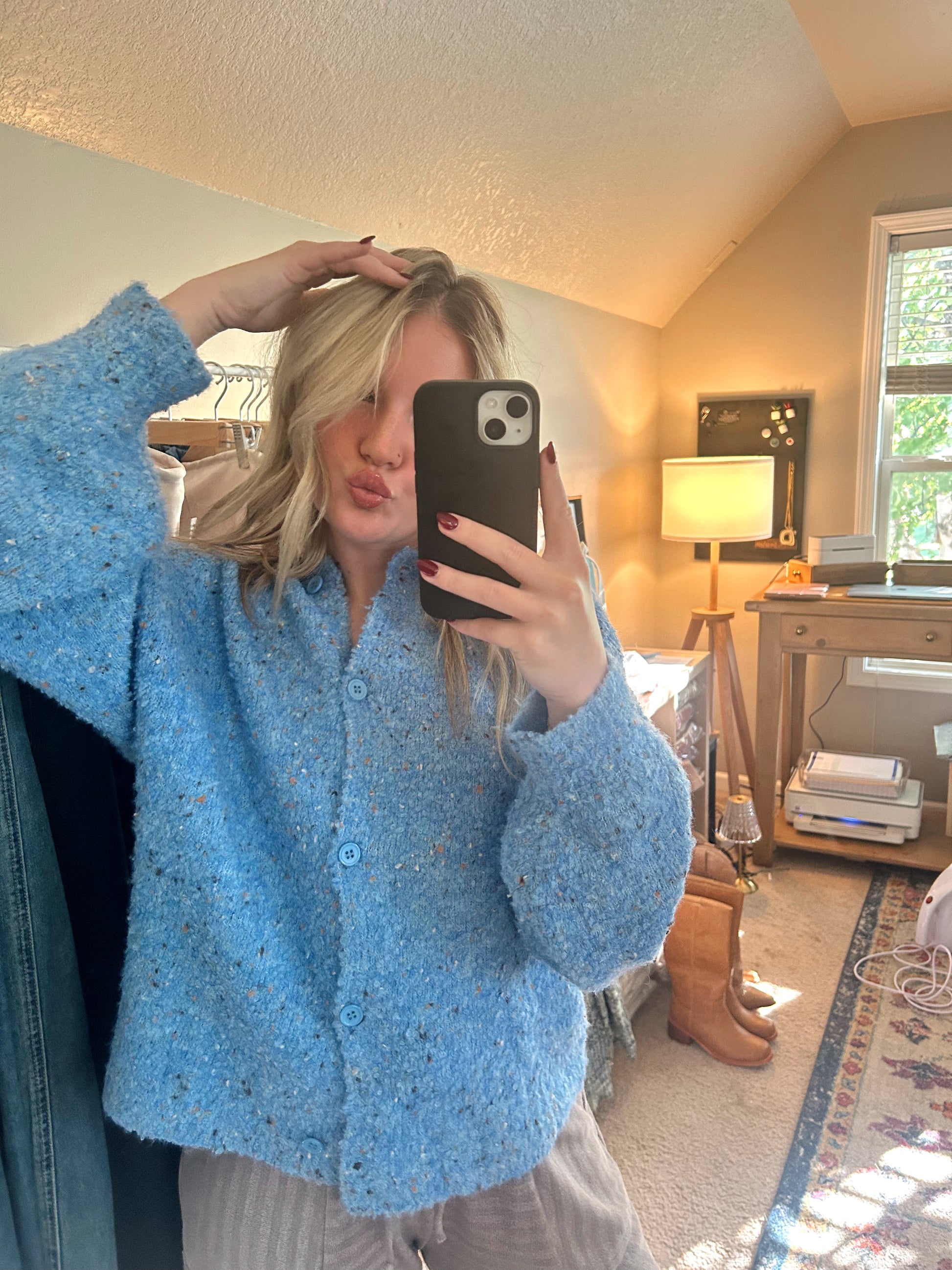 Blue knit cardigan